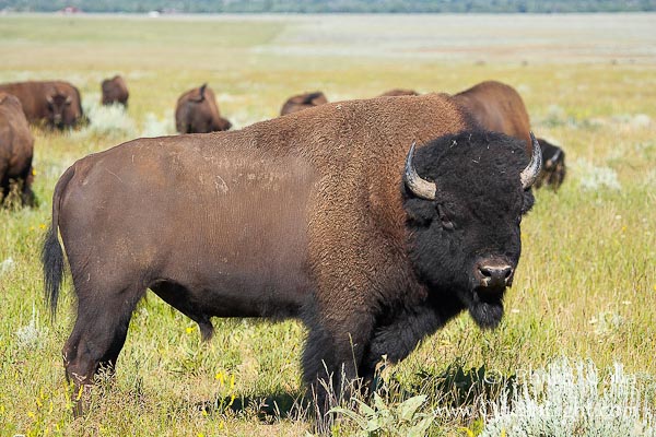 Bison bison. Bison bison o bisonte americano es un animal grande, robusto y de una gran fuerza. Uno de los animales más simbólicos para las tribus de nativos americanos es el bisonte americano, considerado un animal sagrado con connotaciones religiosas. The american bison or simply bison (bison bison), also commonly known as the american buffalo or simply buffalo, is an american species of bison that once roamed north america in vast herds. El bisonte americano (bison bison), también denominado búfalo, y —palabra en desuso— cíbolo, es una especie de gran mamífero artiodáctilo de la familia de los bóvidos (bovidae). Desde 1.970 la población de bisontes parece descender lentamente dentro de wood buffalo, mientras en otras áreas cercanas, como el santuario de bisontes del mackenzie o el parque nacional.. See image below.